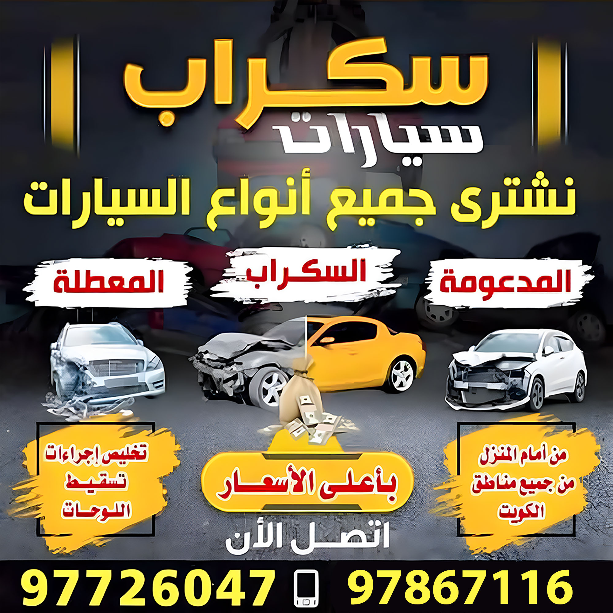 لو كنت تبحث عن أفضل سكراب سيارات في الكويت فيمكنك الآن الاتصال علينا عبر رقمنا حيث نوفر لك خدمات سكراب السيارات بكافة اشكالها وبأفضل الاسعار